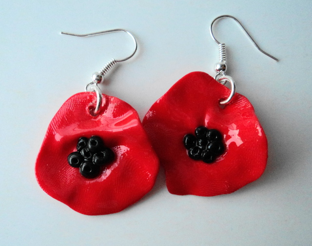 Setul este format din colier si cercei si contine inimi din fimo pictate manual,inimi metalice si din sticla alba ochi de pisica si cristale rosii din sticla.