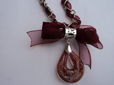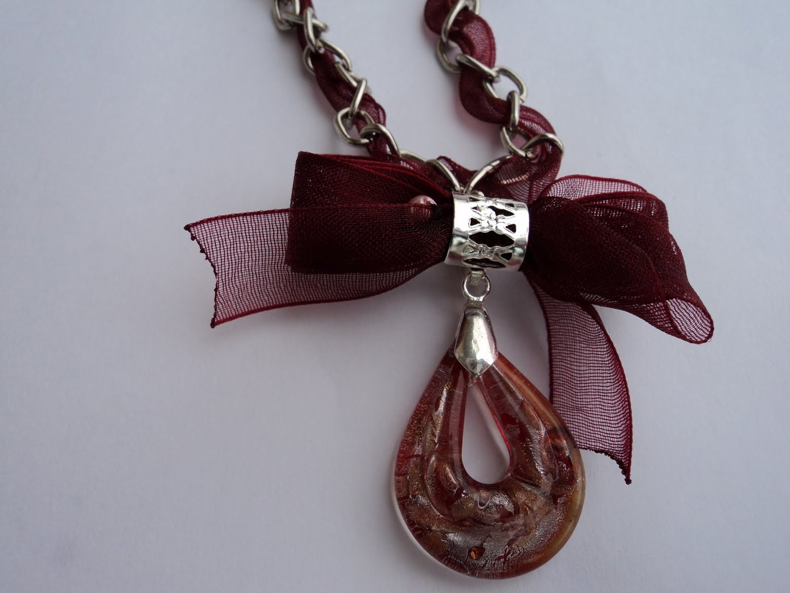 COLIERUL CONTINE UN PANDANTIV DIN STICLA MURANO, PANGLICA ORGANZA VISINIE SI LANT METALIC.