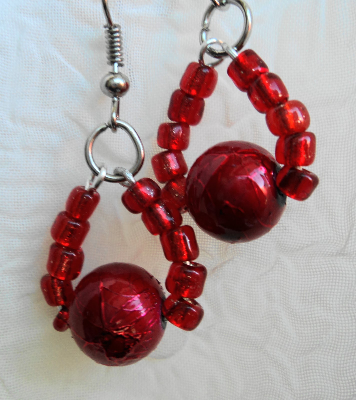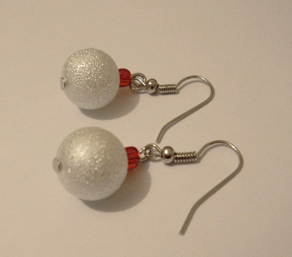 Setul este format din colier si cercei si contine coral rosu,margele acrilice albe cu efect cerat,margele portelan albe si margele metalice filigran.