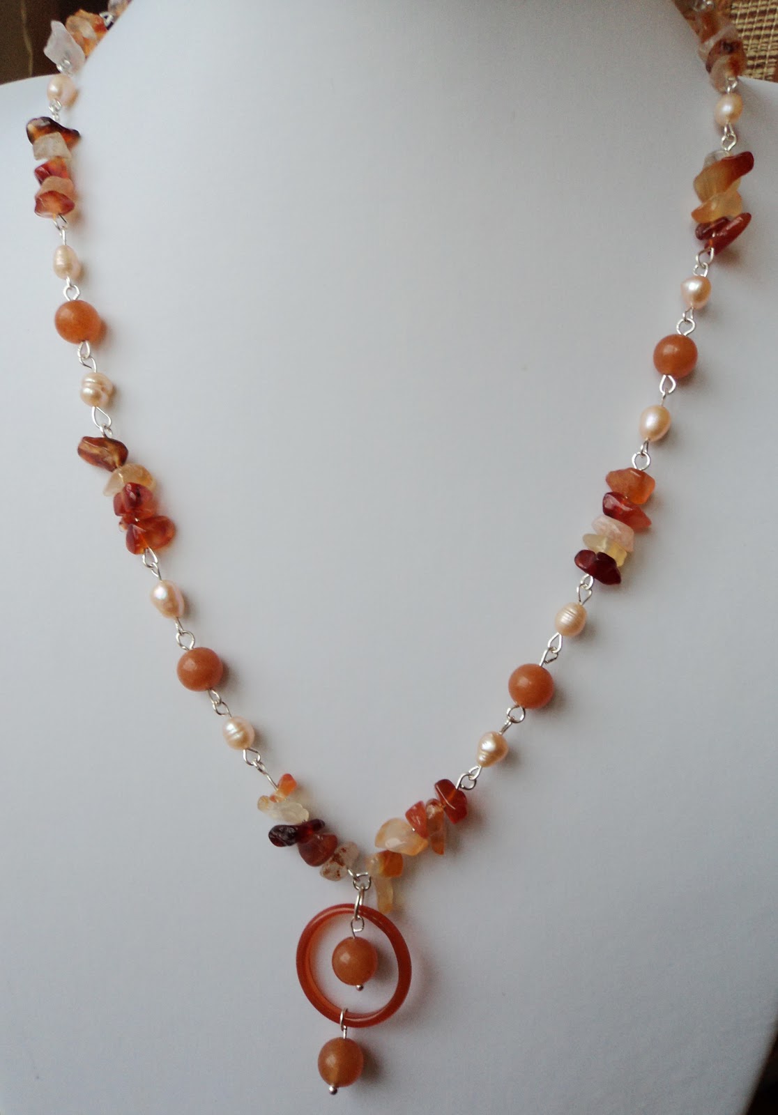 SETUL CONTINE MARGELE SI INELE DIN CARNEOL,PERLE NATURALE BEJ,CHIPSURI DE AGATE ROSII .