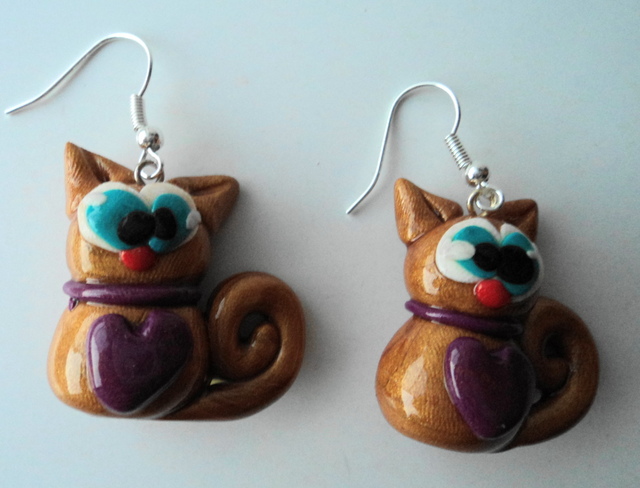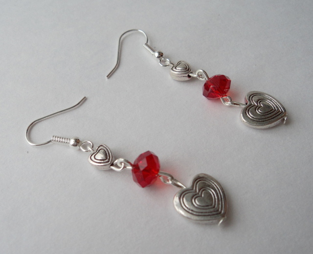 Setul este format din colier si cercei si contine inimi din fimo pictate manual,inimi metalice si din sticla alba ochi de pisica si cristale rosii din sticla.