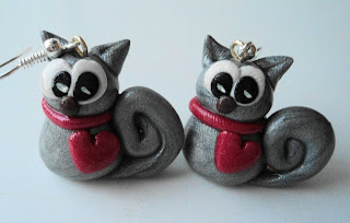 Setul este format din colier si cercei si contine inimi din fimo pictate manual,inimi metalice si din sticla alba ochi de pisica si cristale rosii din sticla.