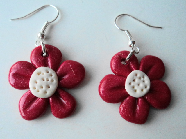 Setul este format din colier si cercei si contine inimi din fimo pictate manual,inimi metalice si din sticla alba ochi de pisica si cristale rosii din sticla.